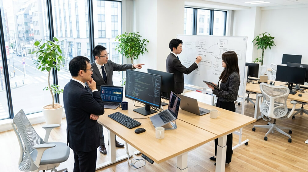 事実、当社メンバーは入社1年以内に全員成約実績があります(新卒含む)。より良いアドバイザーを育てるためには、インプットとアウトプットの両立が必要です。そのためには、メンバー個人の力量に偏重しすぎないような教育体制や案件対応の仕組みがあります。また、顧客に対する品質担保のためにもチームで案件対応を行っています。