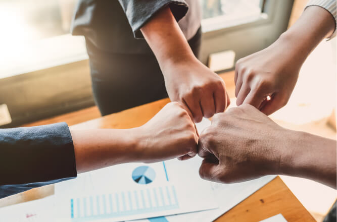 一人のコンサルタントが孤軍奮闘するのではなく、チーム全員の知見を合わせ、組織として一社一社へ走する。